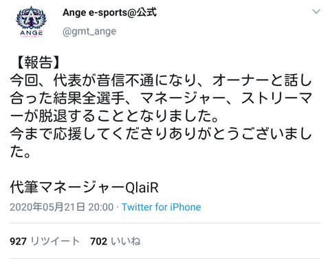 【悲報】女性限定e-スポーツチーム、オーナーが消えてチーム解散してしまうwwwwwwwwww X Facebook はてブ LINE コピー 2020.05.24 スポンサーリンク 1:風吹けば名無し:2020/05/22(金) 05:16:36 ええんか… 2:風吹けば名無し:2020/05/22(金) 05:16:56 めちゃくちゃで草 3:風吹けば名無し:2020/05/22(金) 05:17:32 なんか闇深そうやな… 続きを読む