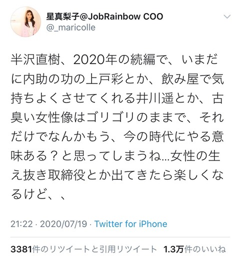 【画像】女子、半沢直樹にブチギレwwwwwwwwww X Facebook はてブ LINE コピー 2020.07.22 スポンサーリンク 1:以下、?ちゃんねるからVIPがお送りします:2020/07/22(水) 10:48:12.778 ID:H5pX3yJt0.net 2:以下、?ちゃんねるからVIPがお送りします:2020/07/22(水) 10:48:56.349 ID:MC26hkPg0.net これは正論 3:以下、?ちゃんねるからVIPがお送りします:2020/07/22(水) 10:48:58.159 ID:IC3XZzdpa.net 万沢直子作れ 続きを読む