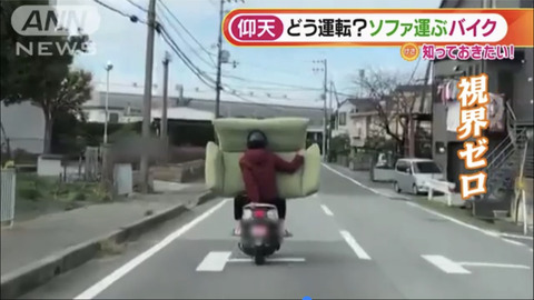 【画像】原付乗りさん、ソファを運んでしまうwwwwwwwwwwwwwww