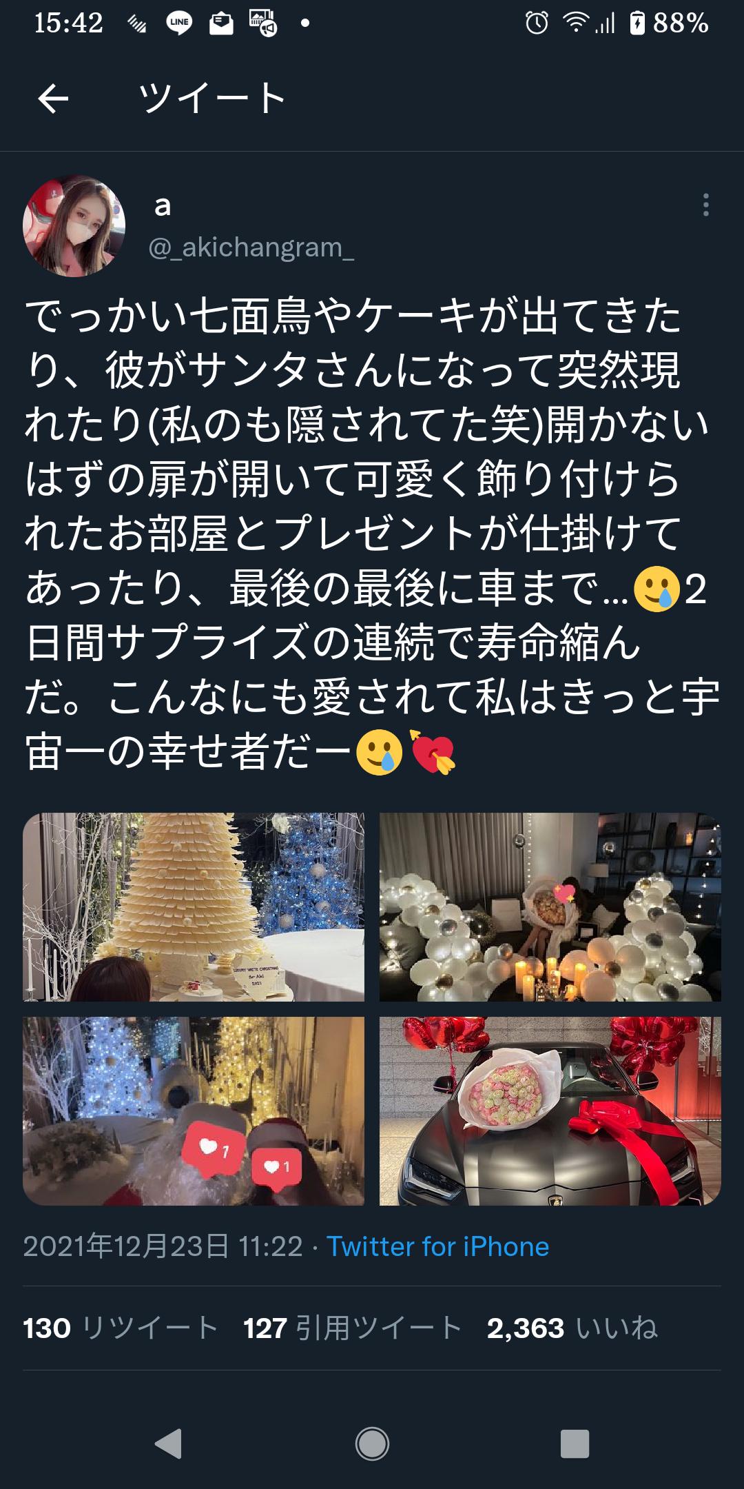 【朗報】女性さん、とんでもないクリスマスプレゼントをいただいてしまうwwww (※画像あり9 X Facebook はてブ LINE コピー 2021.12.23 スポンサーリンク 1:風吹けば名無し:2021/12/23(木) 15:50:47.41 ID:v4K9UfPL0.net 3:風吹けば名無し:2021/12/23(木) 15:52:24.73 ID:pq13JUaPa.net 対価は払わんといかんからな 怖いね 5:風吹けば名無し:2021/12/23(木) 15:52:38.93 ID:v4K9UfPL0.net >>3 旦那やぞw 続きを読む