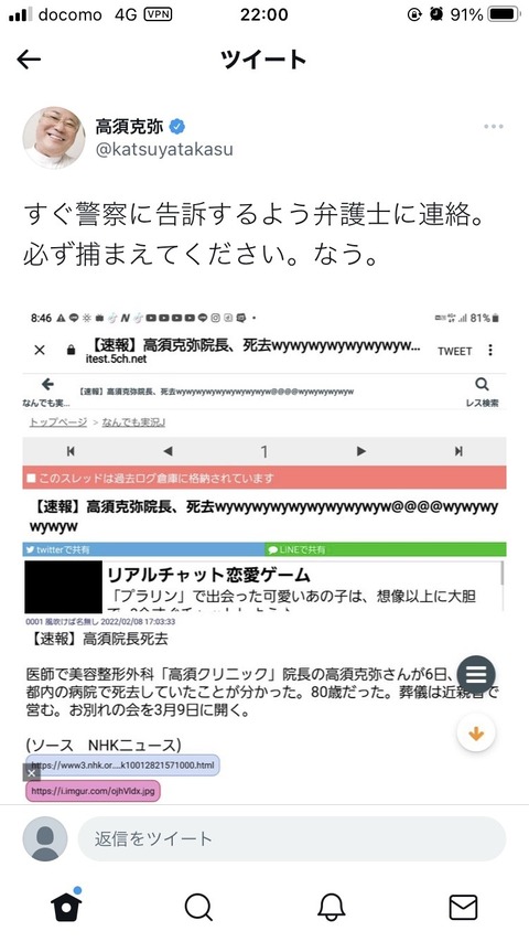 【悲報】高須院長、なんjのデマにブチ切れwwwwwwwwww X Facebook はてブ LINE コピー 2022.02.09 スポンサーリンク 1:風吹けば名無し:2022/02/09(水) 15:05:27.55 ID:E7Q68cmR0.net やってええ相手とあかん相手がおるやろ… 2:風吹けば名無し:2022/02/09(水) 15:05:39.59 ID:E7Q68cmR0.net 完全に怒らせたな 4:風吹けば名無し:2022/02/09(水) 15:05:49.41 ID:eX5Li2Nc0.net 宮崎駿のついでにやられただけなのに 続きを読む