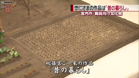 秋篠宮家の長男・悠仁さまは「昔の暮らし」に関心を持っていて、去年の文化祭には、ご一家で昔の日本家屋を精巧に再現した模型を出品されたが、今年は建物の周りに水田や畑など庭の部分が加わった。