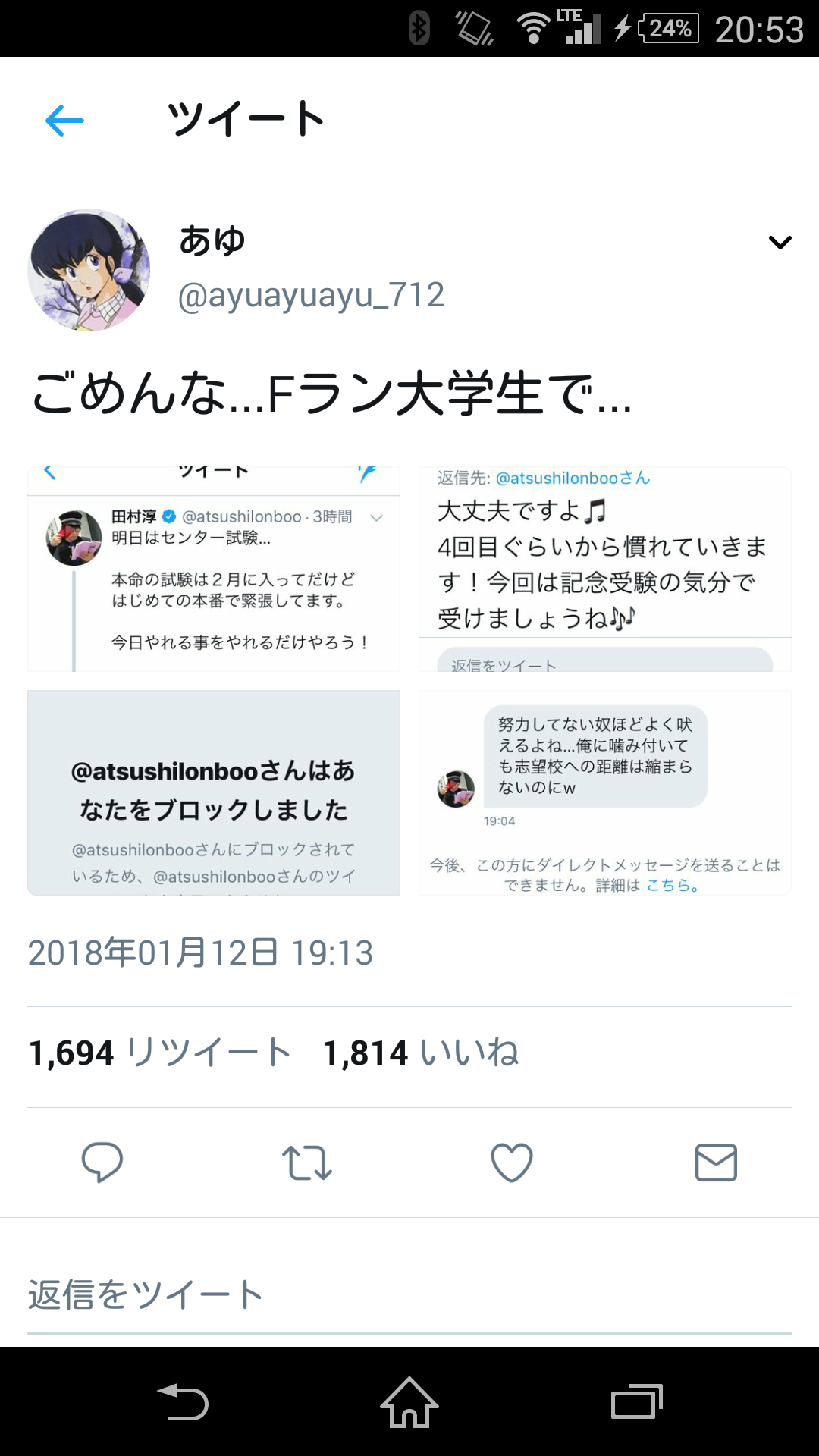 センター前日ロンブー田村敦、ツイカスに心ない言葉をかけられブチギレwwwwwwwwwwww X Facebook はてブ LINE コピー 2018.01.12 スポンサーリンク 1:風吹けば名無し:2018/01/12(金) 20:56:18.33 ID:0CSFMlu/a.net かわいそう 3:風吹けば名無し:2018/01/12(金) 20:57:23.18 ID:nuCmtn2C0.net これは絡んだバカが悪い 4:風吹けば名無し:2018/01/12(金) 20:57:33.92 ID:0CSFMlu/a.net 普通にかわいそうだと思った 6:風吹けば名無し:2018/01/12(金) 20:58:10.75 ID:0CSFMlu/a.net 田村が本気なんだなあってのも伝わってきた 続きを読む